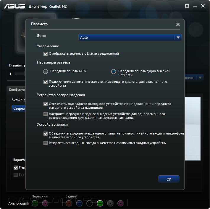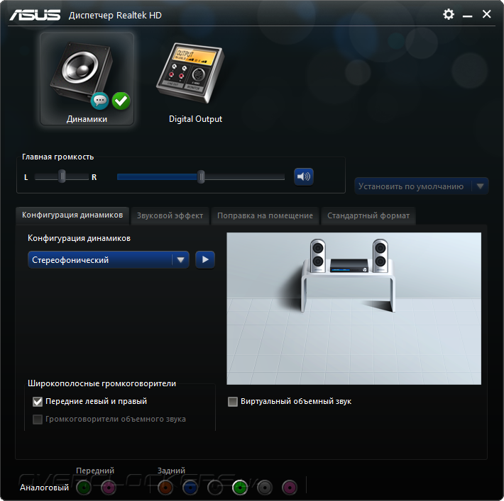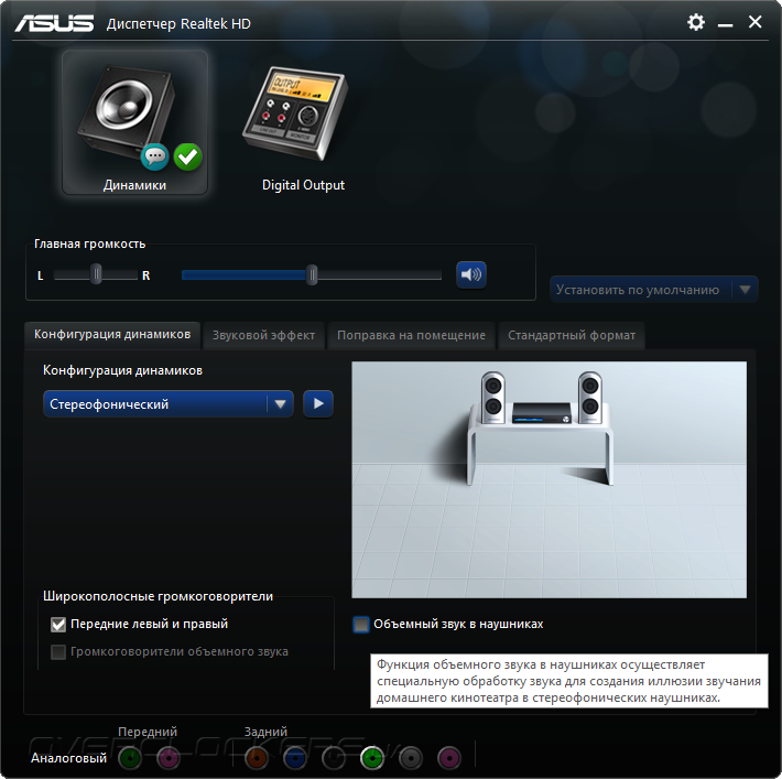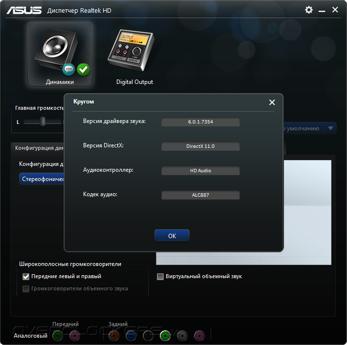 Для работы сетевой подсистемы нет никакого сопроводительного ПО. Звуковой кодек оснащается поддержкой в виде фирменного конфигуратора от производителя, коим выступает диспетчер Realtek HD. Благодаря имеющемуся на PCB операционному усилителю, можно привлекать к использованию несколько вариантов работы подключенного оборудования. Профили «Наушники» и «Передние Динамики» обладают различным эффектом воздействия на итоговую картину, кроме них также можно активировать технологию виртуализации звучания, что тоже приносит ощутимые изменения в прослушиваемый материал. Сам же кодек ALC887 звёзд с неба не хватает, поэтому говорить об особой детализации звучания не приходится.