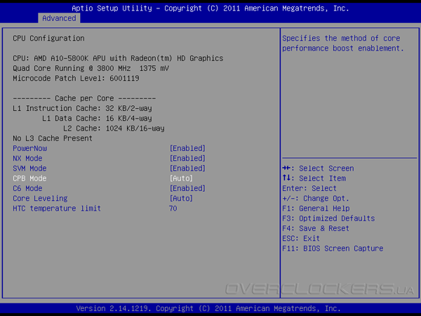 CPU Configuration радует возможностью задания режима Turbo Core. В интерпретации Biostar это звучит как Core Performance Boost (CPB). Core Leveling возвращает нас на несколько лет назад, к славным временам «анлока». Только вот какова польза от такого пункта при нынешнем процессоре? Таким вопросом мы еще не раз зададимся сегодня.
