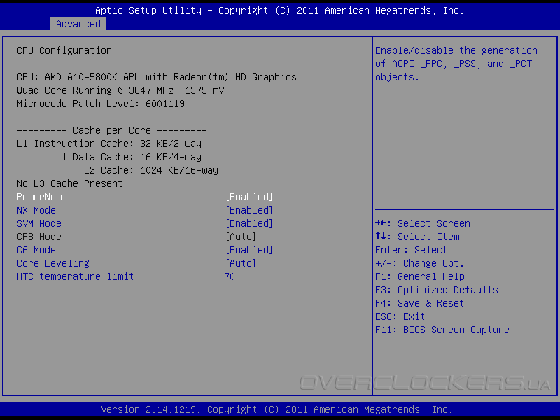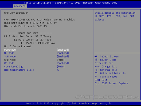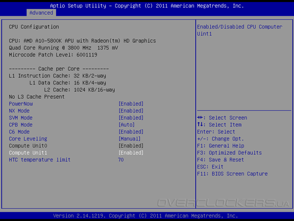 Разогнать процессор можно посредством пункта AMD Pstate Configuration. Здесь доступны изменение множителя, напряжения и частоты NB. Для ценителей есть пункт Core Devider, и снова не ясно, зачем он нужен. Впрочем, забегая вперёд, можно предположить, что выбор в этом пункте делителя со значением 2 придало бы системе должной стабильности (понижением рабочей частоты до 1900 МГц).