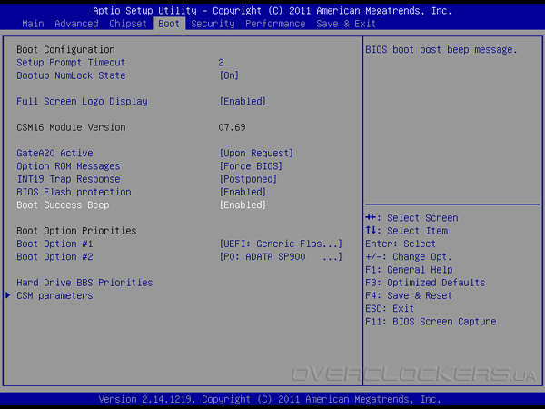 В следующей вкладке Boot отметим возможность отключения короткого гудка «спикера», что оповещает об успешной процедуре прохождения POST. Пункт крайне полезный, и его редко где можно встретить. Здесь же можно задать желаемый уровень взаимодействия с загрузчиком операционной системы.