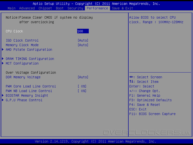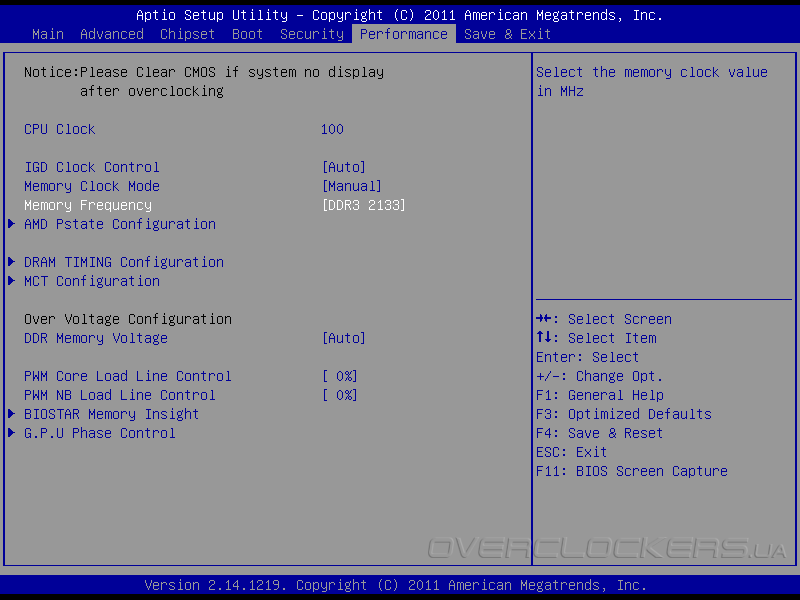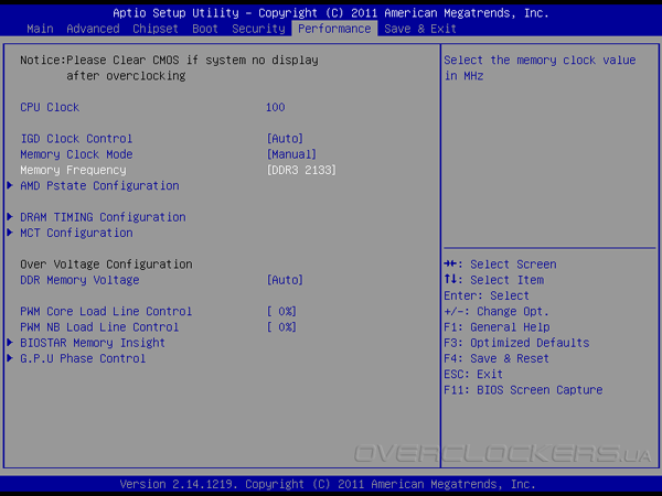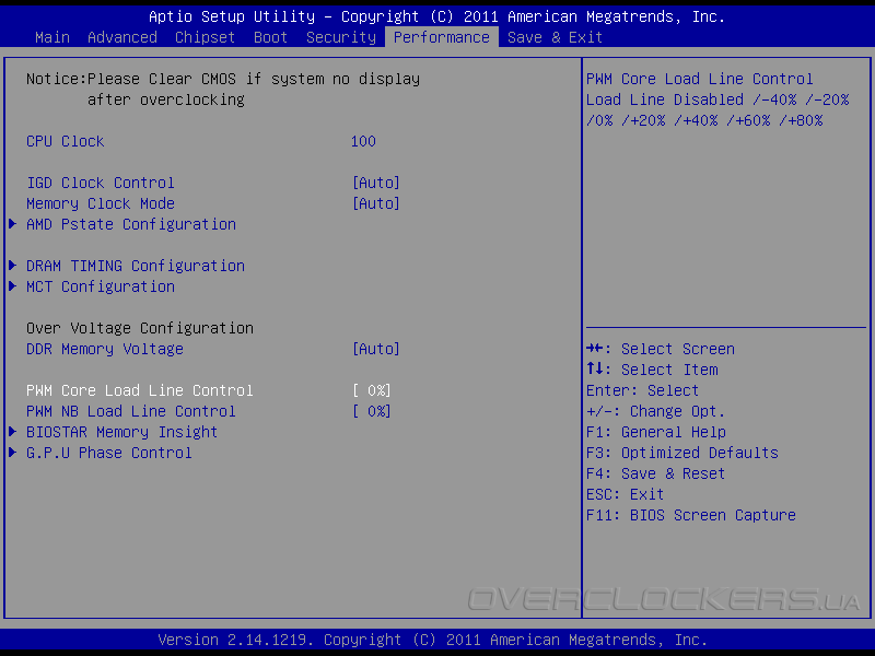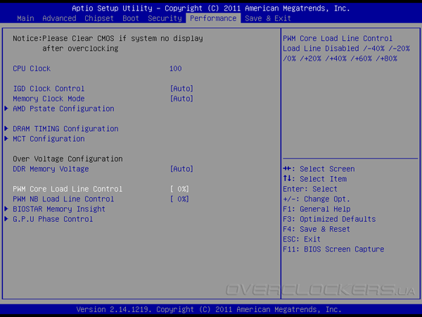 Наиболее интересная вкладка Performance осталась напоследок. В актуальной версии прошивки появился пункт задания опорной частоты. В предыдущей версии он отсутствовал напрочь. Впрочем, ликовать пока рано, поскольку управлять напряжением по факту невозможно. Есть только косвенный путь — активация NB Load Line Control. Но об этом позже.