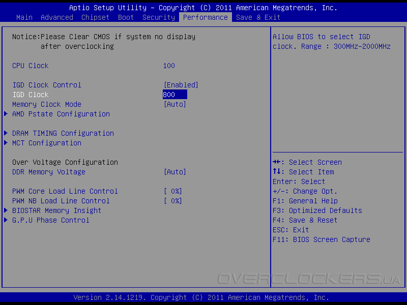Также в UEFI есть возможность изменить частоту графического блока, но изменить напряжение — снова негде.