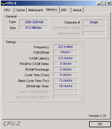 512Mb PC3200 Kingston @ 227MHz 2.5-3-2-5-1T