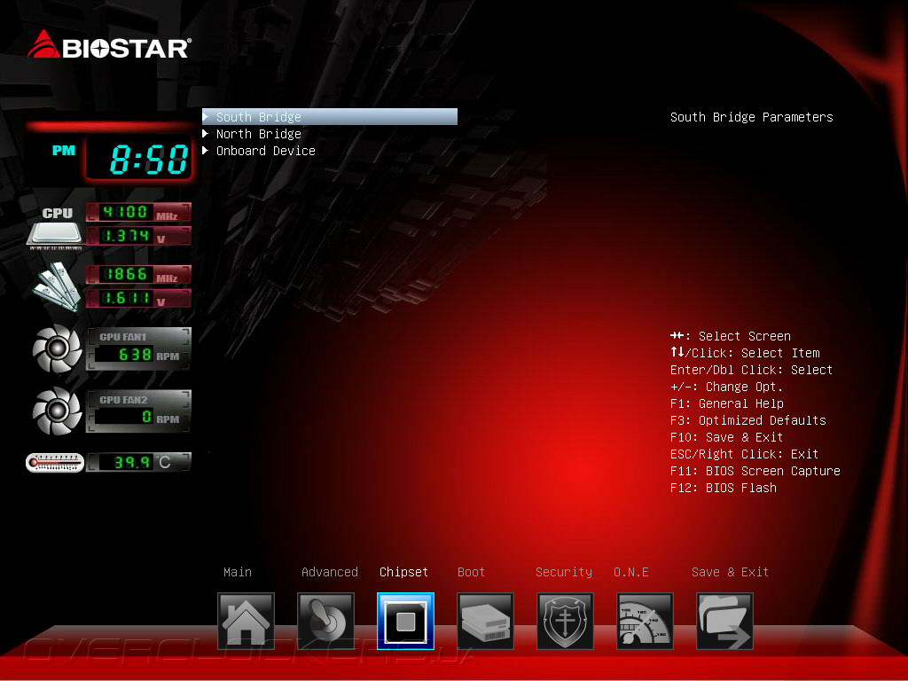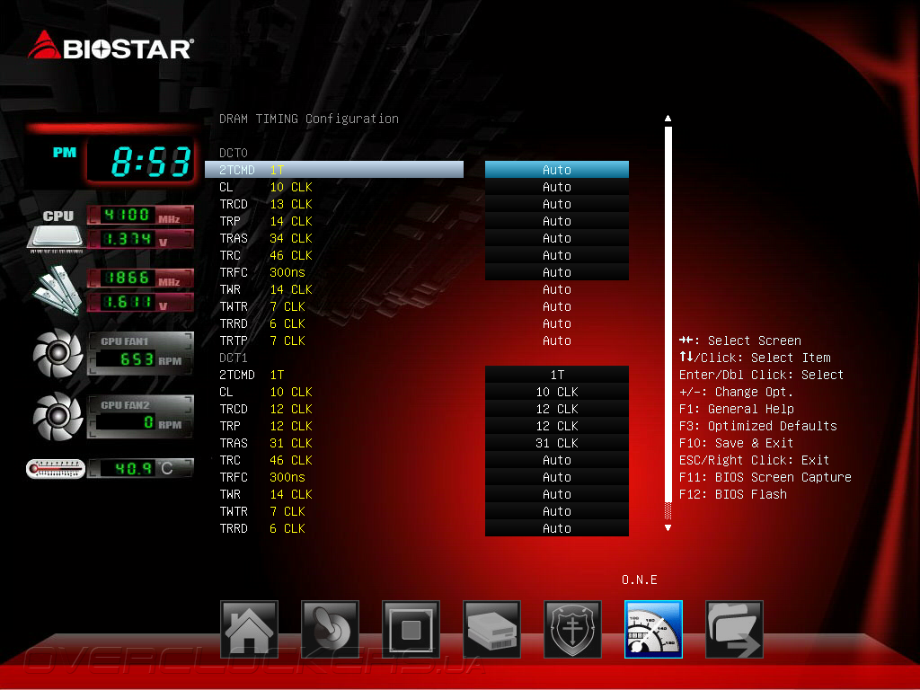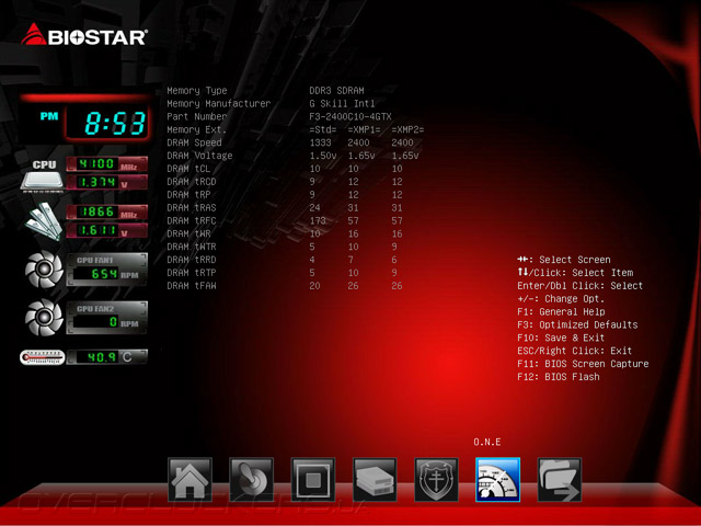 За настройку параметров ОЗУ отвечает вкладка DRAM Timing Configuration, а в подменю Biostar Memory Insight можно узнать информацию о таймингах, хранящуюся в SPD модулей оперативной памяти.