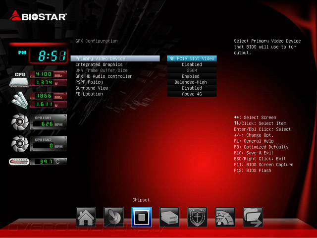 Подраздел South Bridge отвечает за настройки «южного моста», а во вкладке GFX Configuration меню North Bridge задаются параметры интегрированного видеоядра.