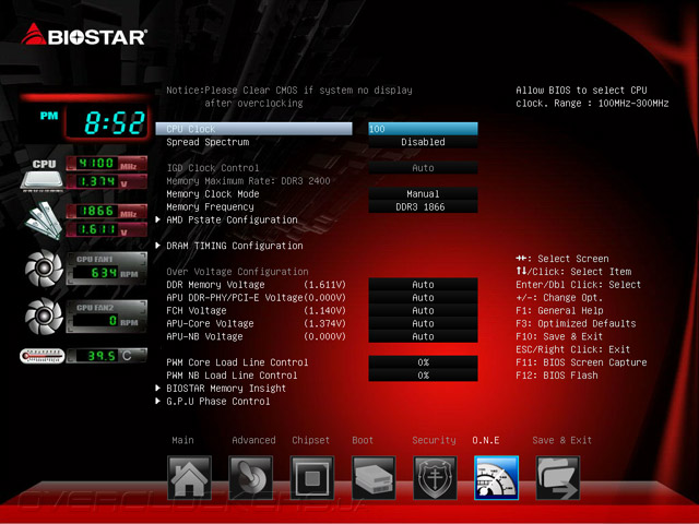 За разгон и управление параметрами быстродействия отвечает раздел O.N.E., в котором пользователи могут управлять частотой опорного генератора, настраивать режим работы ОЗУ, управлять питанием и задавать параметры работы технологии Load Line Control, которая препятствует падению напряжений на вычислительных модулях и встроенном северном мосту.