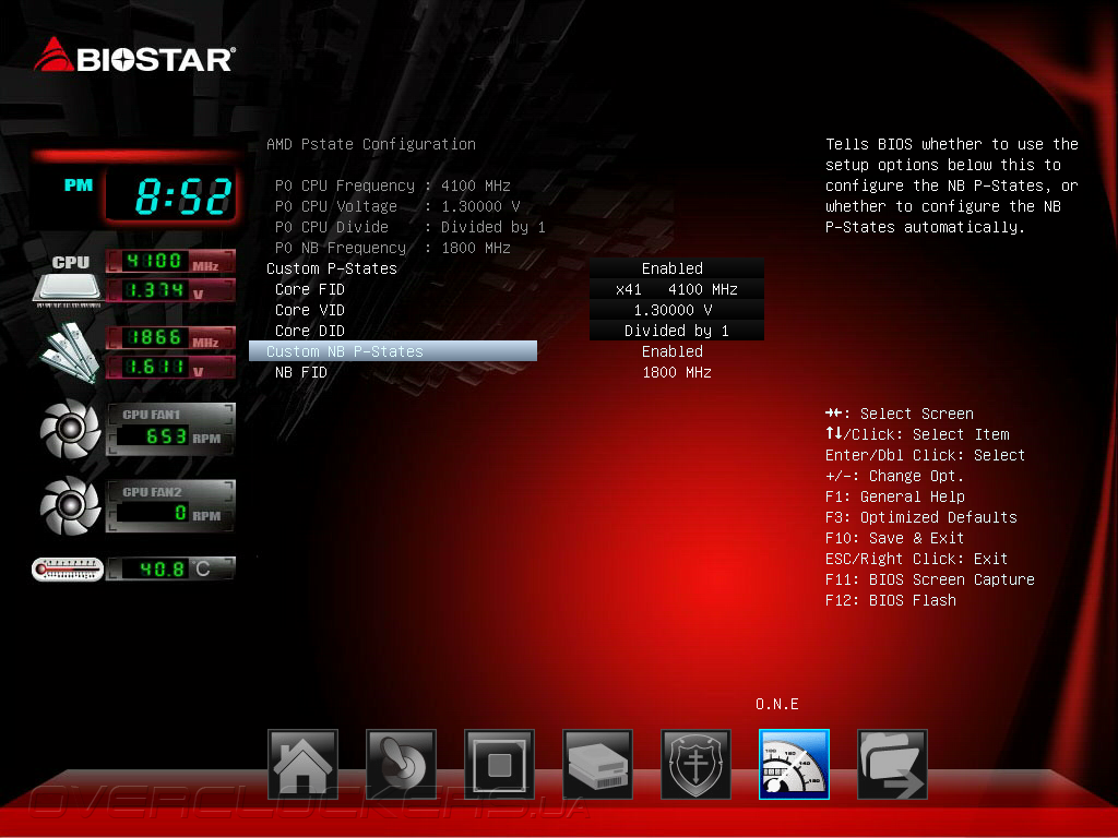 Управлене частотой вычислительных модулей и встроенного северного моста находится в подменю AMD Pstate Configuration. Здесь же можно откорректировать VID гибридного процессора.