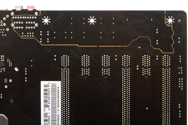 Зона аудиокодека и сопутствующих элементов отделена от остальной электроники в отдельный участок путём вытравливания фольги во всех слоях текстолита материнской платы.