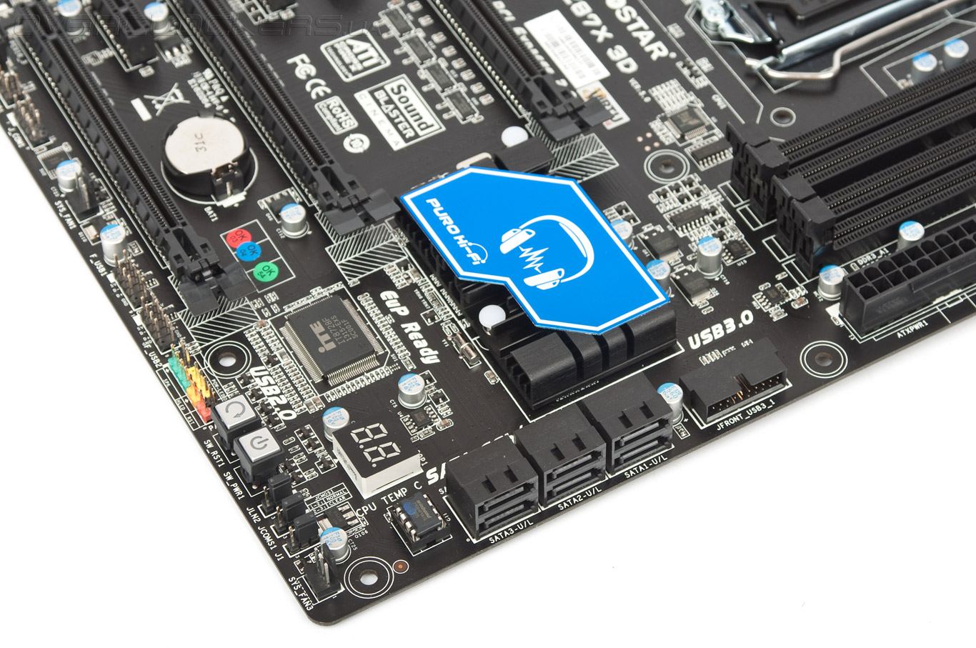 Эмблему Puro Hi-Fi в этот раз поместили на охладитель чипсета. Сам радиатор имеет достаточную площадь для беспроблемного исполнения своих прямых обязанностей.