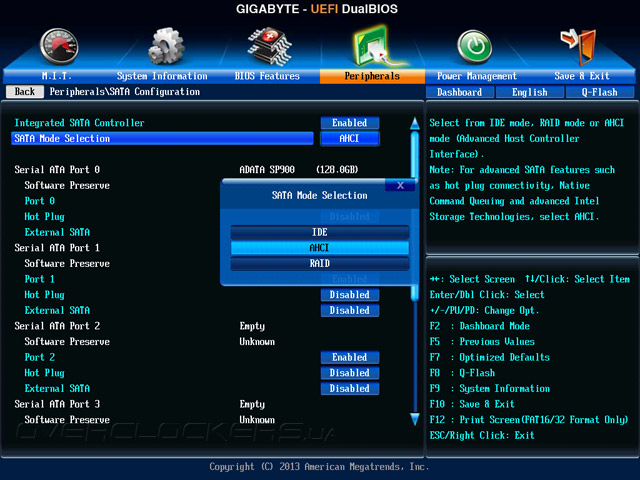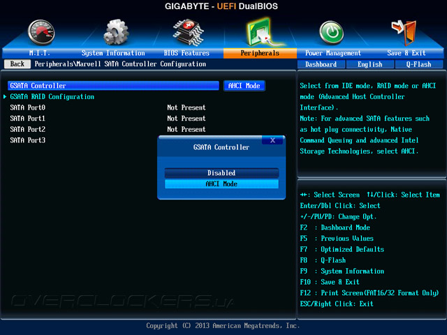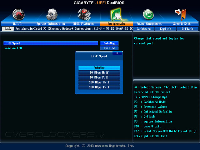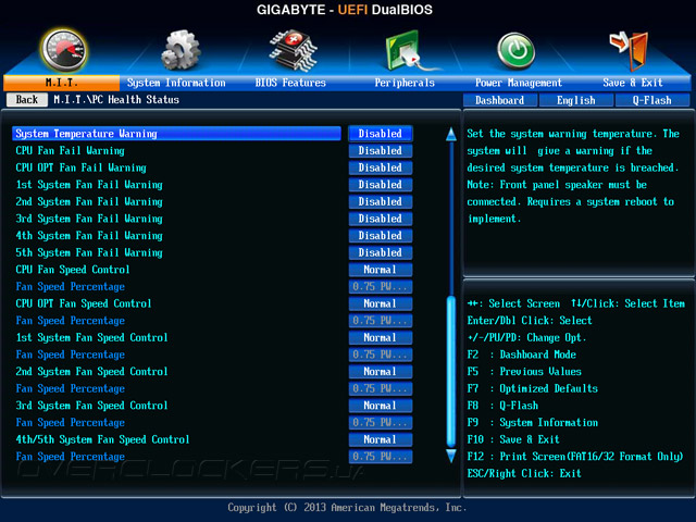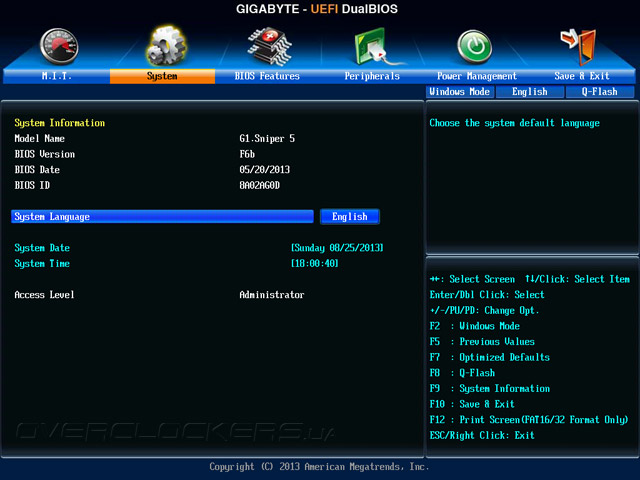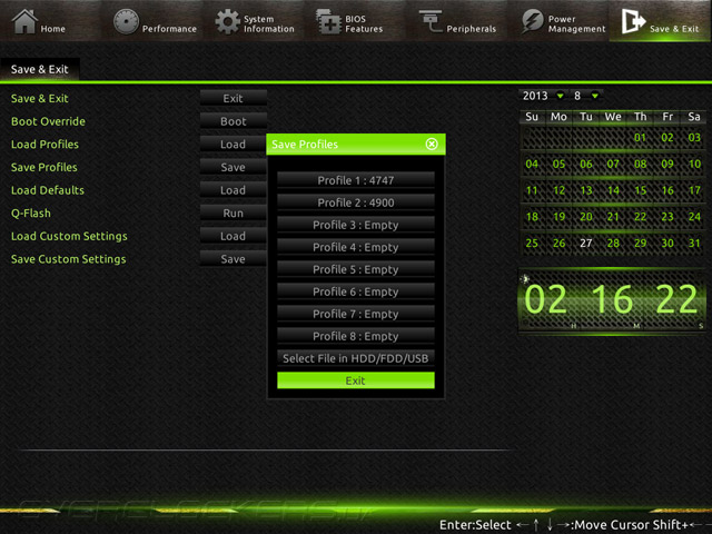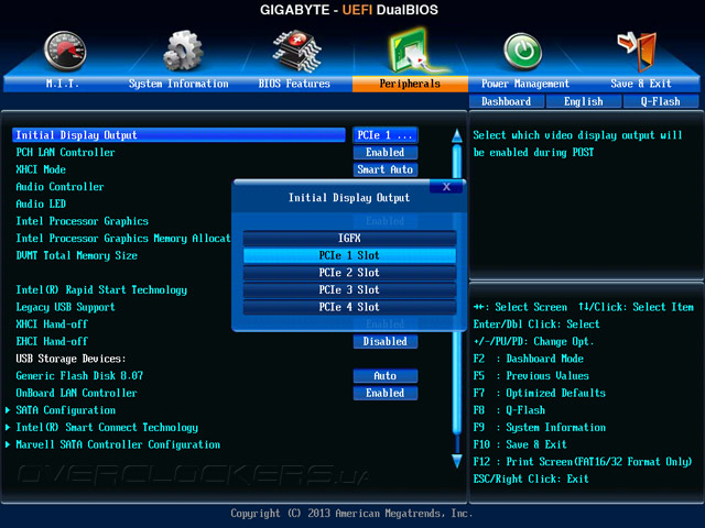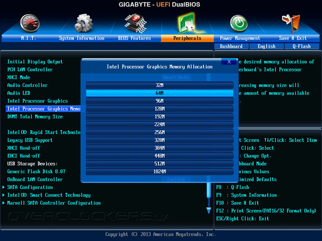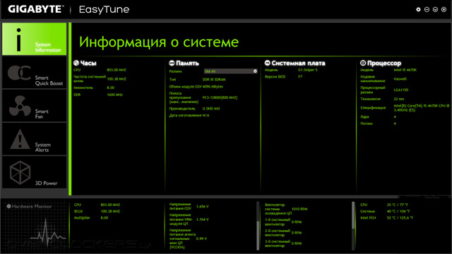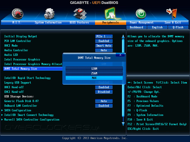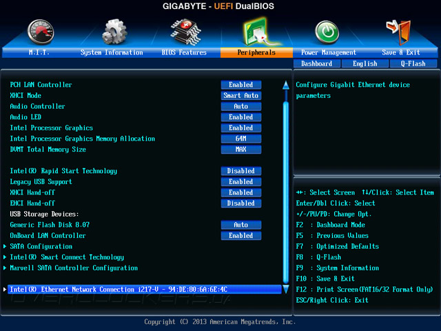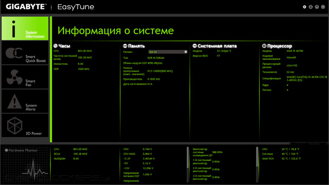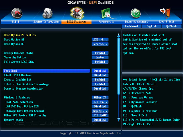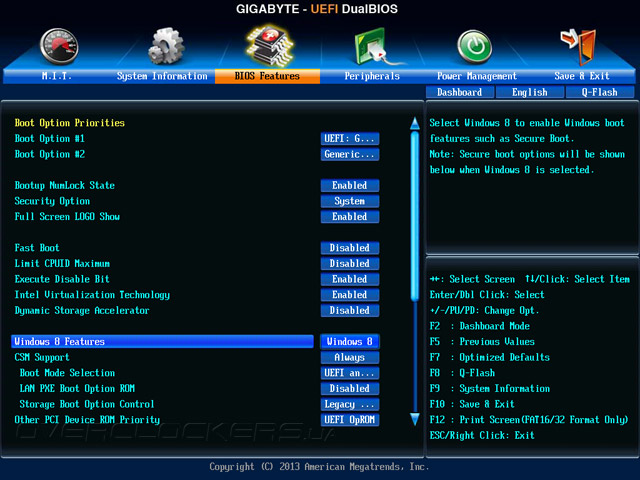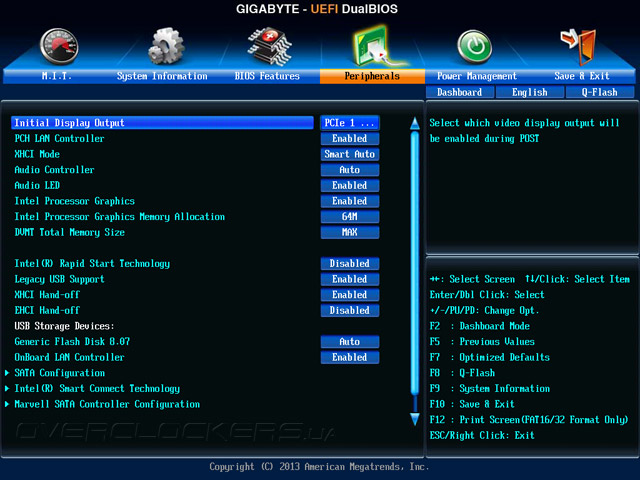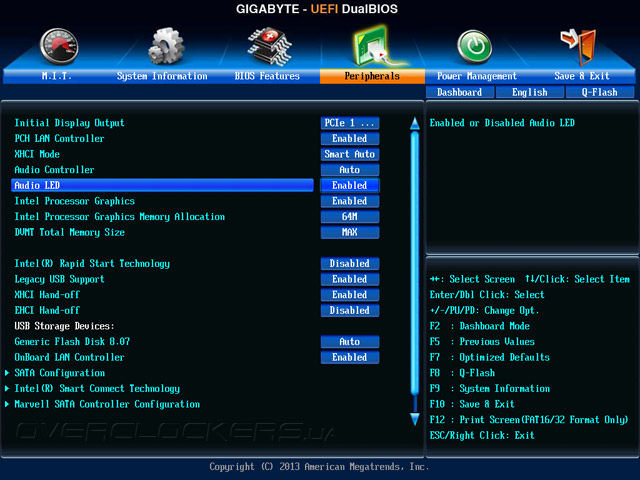 Наши постоянные читатели уже имели возможность познакомиться с приемником 3D BIOS от Gigabyte, который получил название Dashboard. На примере GA-Z87X-OC мы отмечали оранжевые оттенки в его стиле оформления, у GA-Z87X-UD3H они сменились голубыми. У сегодняшней подопечной цвета обрели оттенки зелёного спектра.
