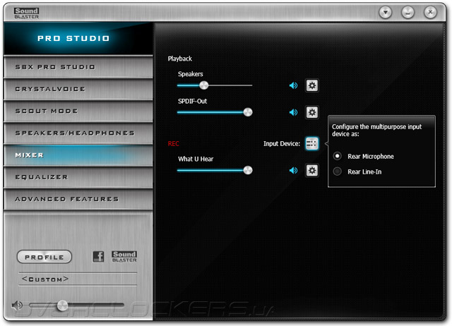 Как мы уже отмечали в прошлом разделе по обзору ПО, утилиты производства Creative не отличаются дружелюбностью к пользователю, который хочет привнести какие-то свои изменения в режим работы или конфигурацию оборудования. Мы перепробовали множество способов и вариаций по конфигурированию входов и выходов, подключенных к Creative Sound Blaster Recon 3Di, но так и не заставили совместно работать хотя бы один выход, который должен иметь обвязку в виде предварительного (фронтальный выход) или операционного усилителей. Поэтому, как и прежде, тестирование по схеме «замыкания на себя» будет проходить, к сожалению, без участия ОУ. Впрочем, эти изделия представляют собой завершенные, самостоятельные продукты, по которым не составляет труда найти желаемую информацию.