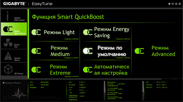 Интересен факт того, что применяемые профили, похоже, пересекаются между собой, во всяком случае, их подход к формированию частоты ЦП, на первый взгляд, одинаков. Performance Upgrade кроме этого ещё и повышает частоту оперативной памяти.