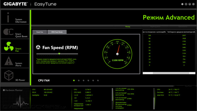 Дабы поспеть за современными веяниями в области программного обеспечения, специалистами были предприняты отчаянные попытки охватить необъятное. Поэтому на выходе мы получили достаточно сырые продукты. Благо, часть, заведующая тонкой настройкой системных охладителей, успешно реализована и доступна для использования.