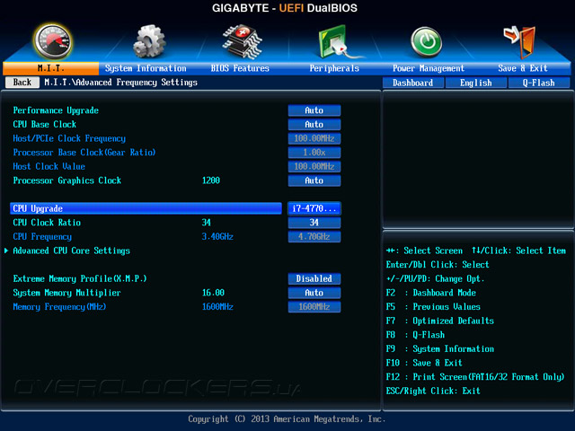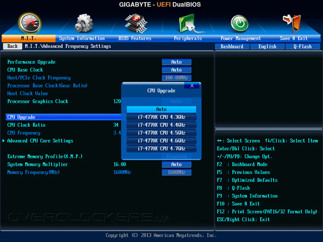 Пункт Advanced Frequency Settings заведует всеми типами множителей, доступных для изменения. Но главенствующим здесь является приятный бонус для новичков разгона — Performance Upgrade. Позже испробуем его возможности. Кроме него предусмотрен ещё один пункт со схожей смысловой нагрузкой — CPU Upgrade. Жаль, что из нашего Core-i5 4670K никак не получится Core-i7 4770K.