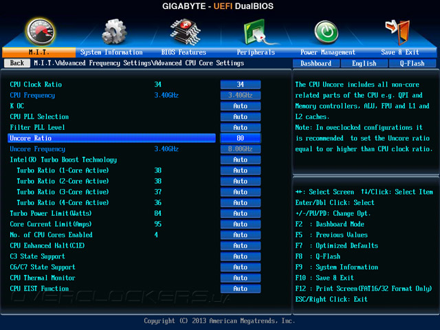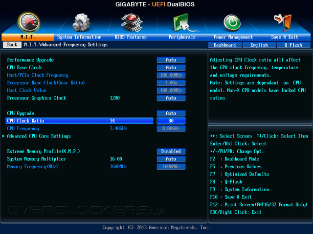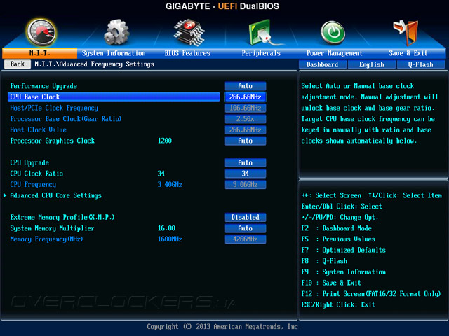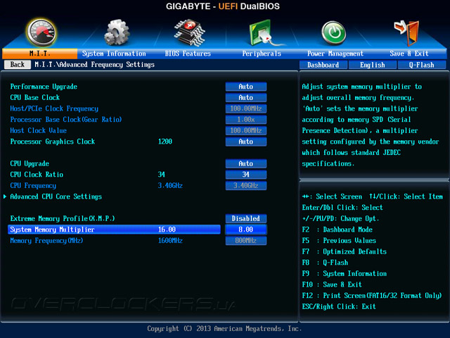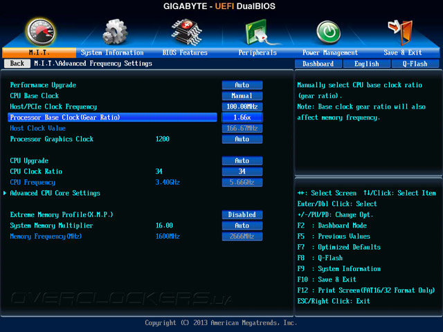 Интерфейс обладает приятной особенностью показывать все множители в явном виде, поэтому при различных манипуляциях итоговая картина сразу предстаёт перед глазами. При выставлении ручного режима появляется возможность самостоятельно изменять множитель Strap (Gear Ratio в понимании Gigabyte).