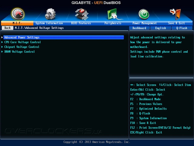 Advanced Voltage Settings — четвёртый пункт меню M.I.T. Здесь каждая группа настроек упорядочена по принципу прямого предназначения. Заглавным идёт подраздел, заведующий тонкими режимами работы преобразователя питания CPU.