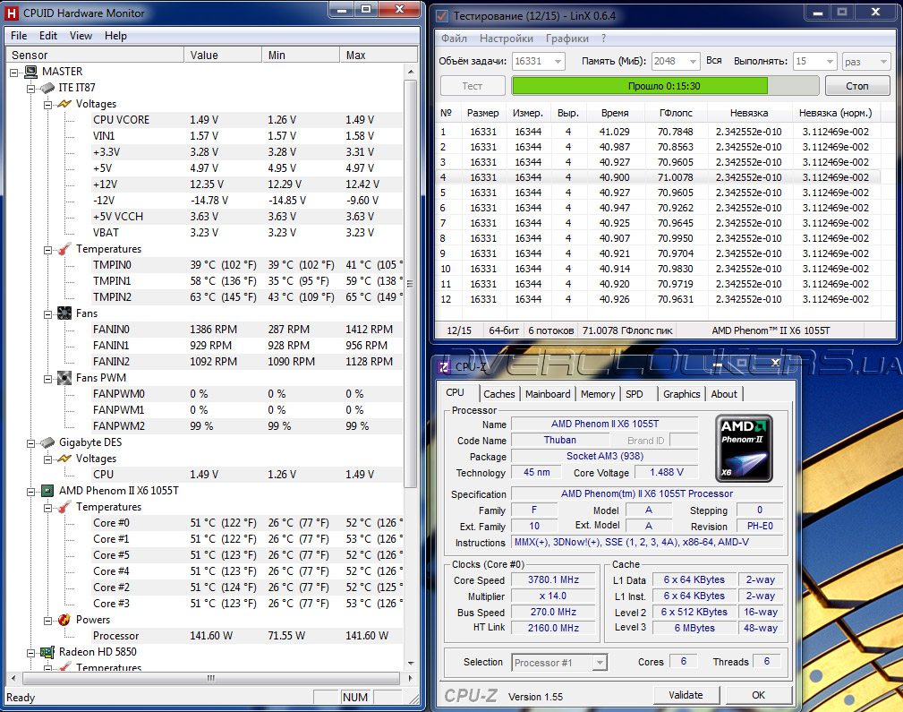 - видеокарта: Powercolor AMD Radeon HD 5850 1GB (850/4500 МГц);