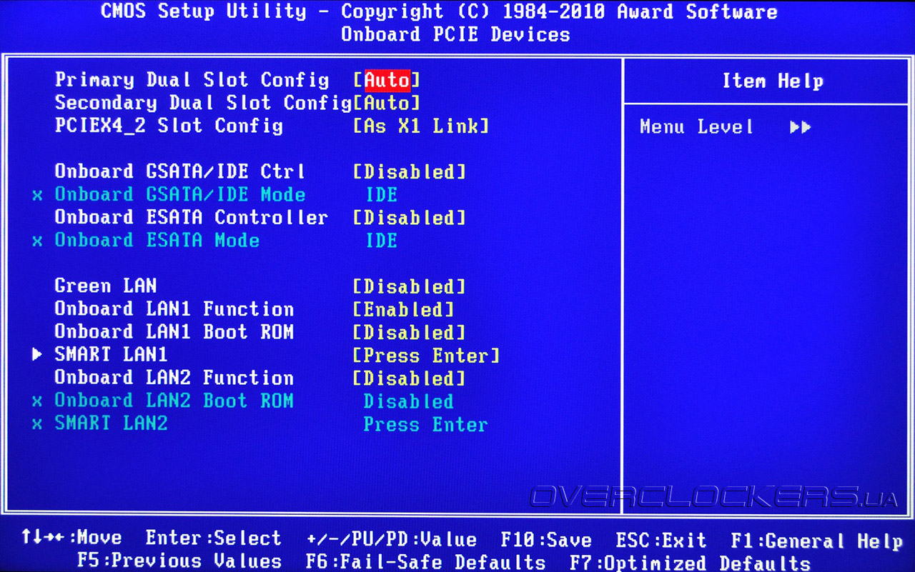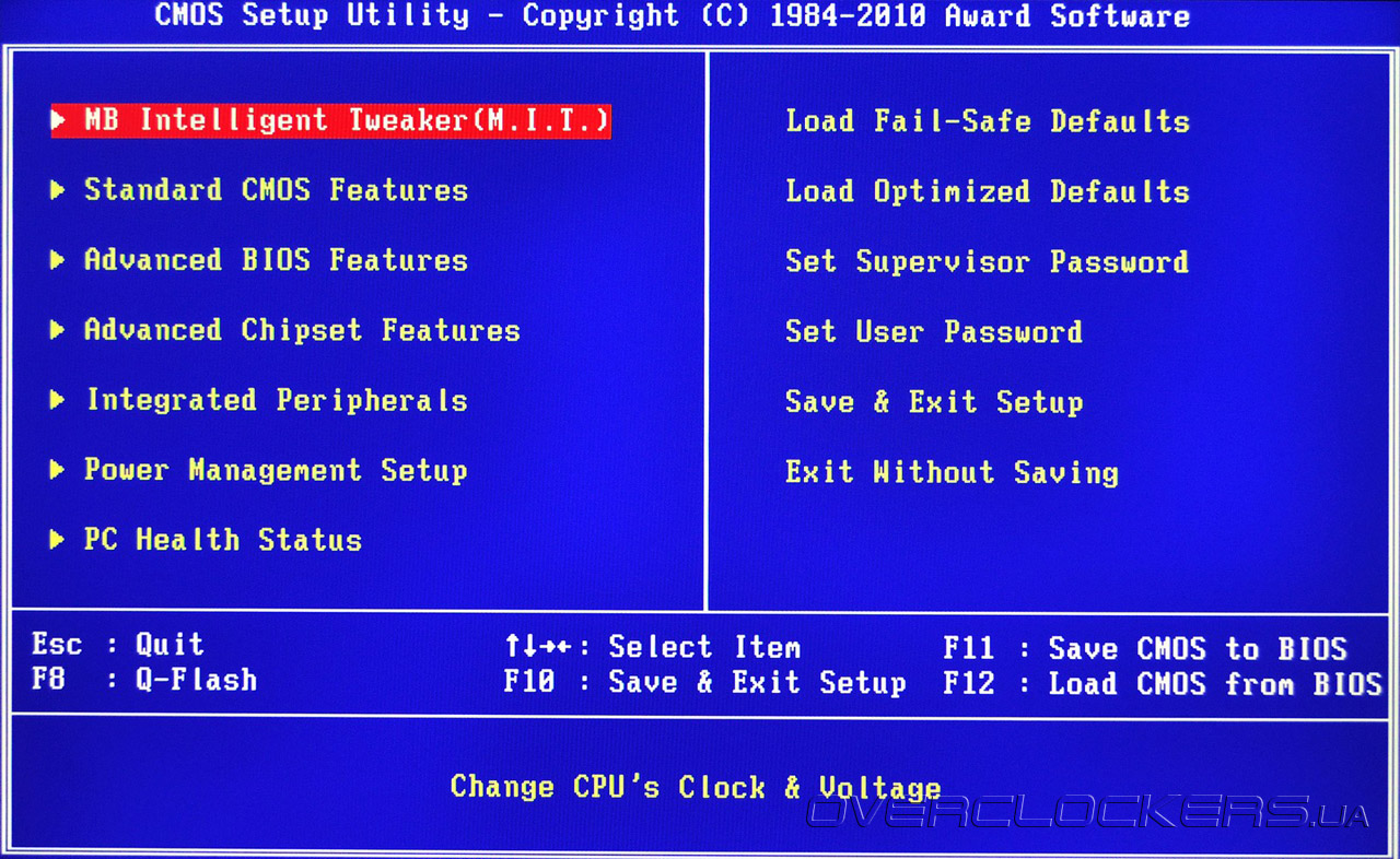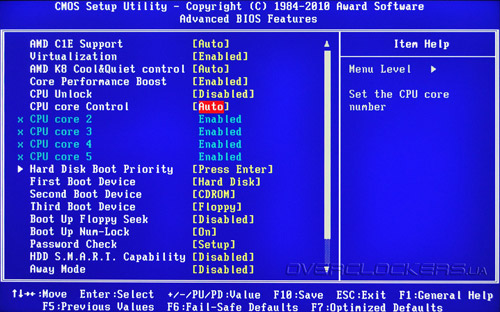Но дизайн дизайном, а при слабой функциональности BIOS все преимущества платы могут быть сведены «на нет». К счастью, с этим у GA-890FXA-UD7 все в полном порядке. BIOS основан на коде Award. Попасть в BIOS можно, нажав клавишу Del. Традиционно для Gigabyte, после нажатия «секретной» комбинации Ctrl+F1 появляются скрытые пункты меню, однако в случае GA-890FXA-UD7 все основные и дополнительные настройки открыты по умолчанию! Главное меню BIOS Setup вполне привычно и знакомо по другим продуктам этой компании: