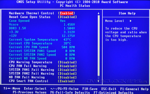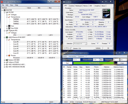 При максимальном разгоне процессора частоту HTT пришлось снизить до 265 МГц. Впрочем, плата позволяла загрузить систему и на 270 МГц, но система вела себя нестабильно. Хотя LinX был пройден, неожиданно обнаружились проблемы в 3DMark Vantage. Итоговый разгон Phenom II X6 составил 3710 МГц. Для этого напряжение Vcore было увеличено на 0,05 В, напряжение Vnb также было увеличено на такое значение. Что характерно, при попытке подать на процессор хотя бы 1,5 В, это приводило к срабатыванию защиты в BIOS, поэтому решено было не играть с огнем и остановиться на достигнутых 3,7 ГГц. Технология Turbocore была отключена. Память работала на частоте 1412 МГц с таймингами 8-8-8-24-1Т, частота NB составляла 2120 МГц. Увы, но повышение частоты NB приводило к краху системы.