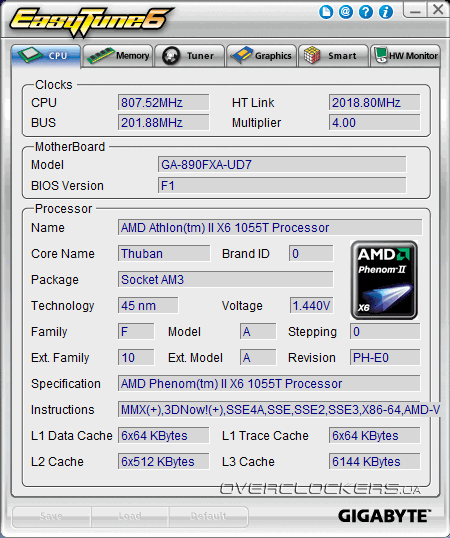 Возможности разгона GA-890FXA-UD7 было решено проверять в паре с Phenom II X6 1055T. Кто же, в самом деле, покупает такие платы, чтобы использовать их вместе с Athlon II X2 215? Тем более, что про разгон Phenom II X6 написано пока что не так много, а значит, тем интереснее будут результаты.