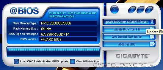 Кроме описанных выше программ, на диске имеется фирменная утилита для поиска и обновления прошивки — @BIOS.