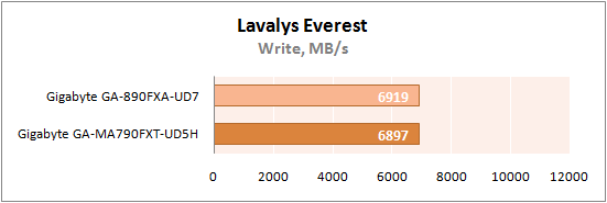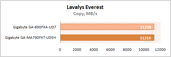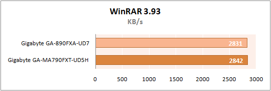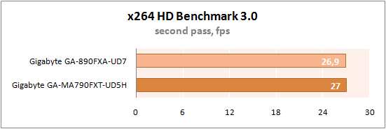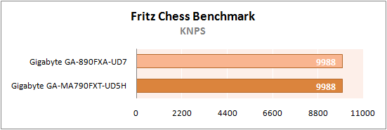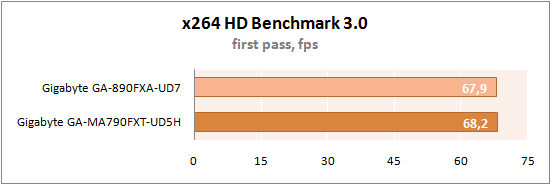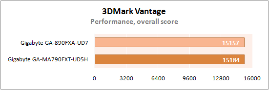 На этот раз GA-890FXA-UD7 показала абсолютно идентичные с GA-MA790FXT-UD5H результаты.