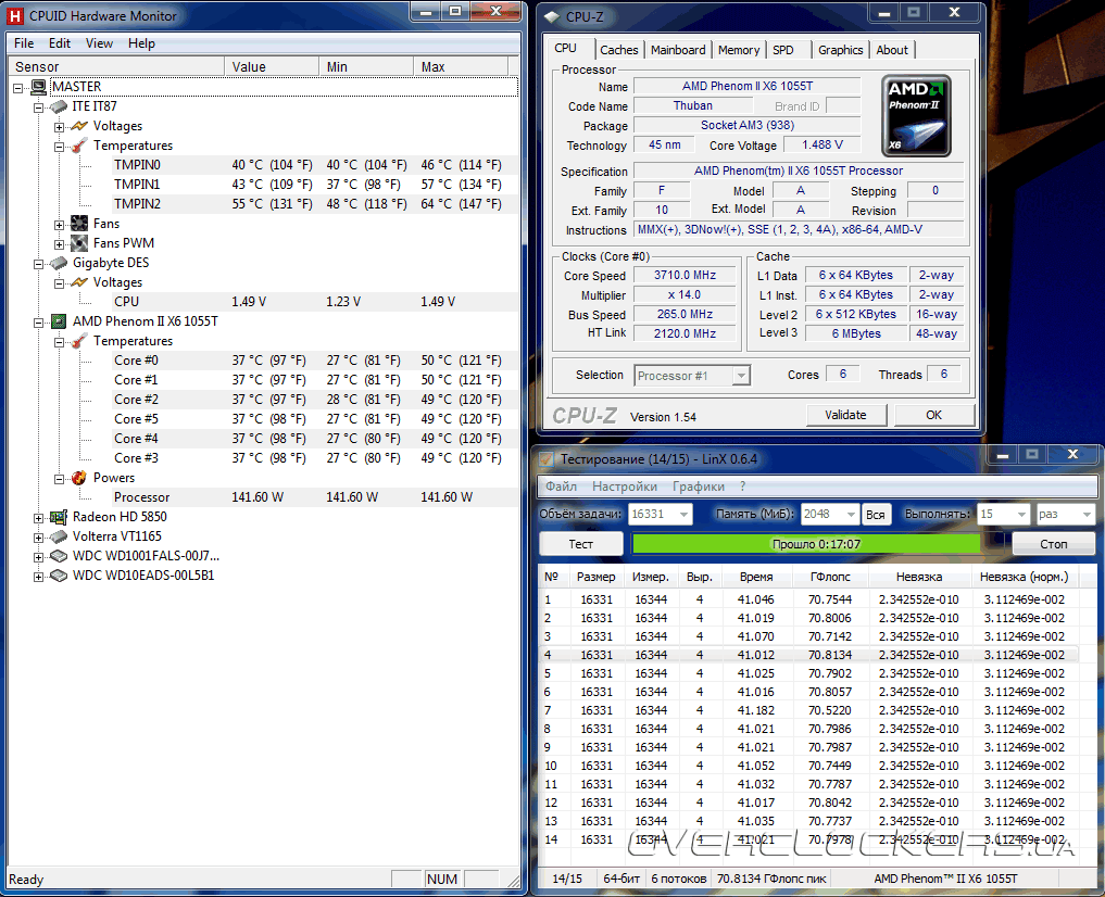 Результаты разгона не поражают воображение, но возможность форсирования тактовой частоты Phenom II X6 1055T почти на 1 ГГц не может не радовать.