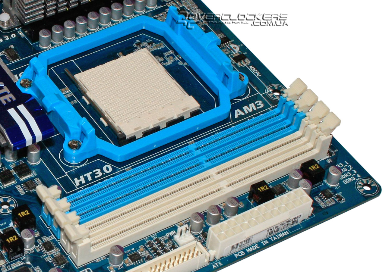 Поддерживаются все существующие на рынке процессоры АМ3. Четыре слота DIMM позволяют установить до 16 ГБайт памяти DDR3 в комбинации 4х4.