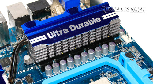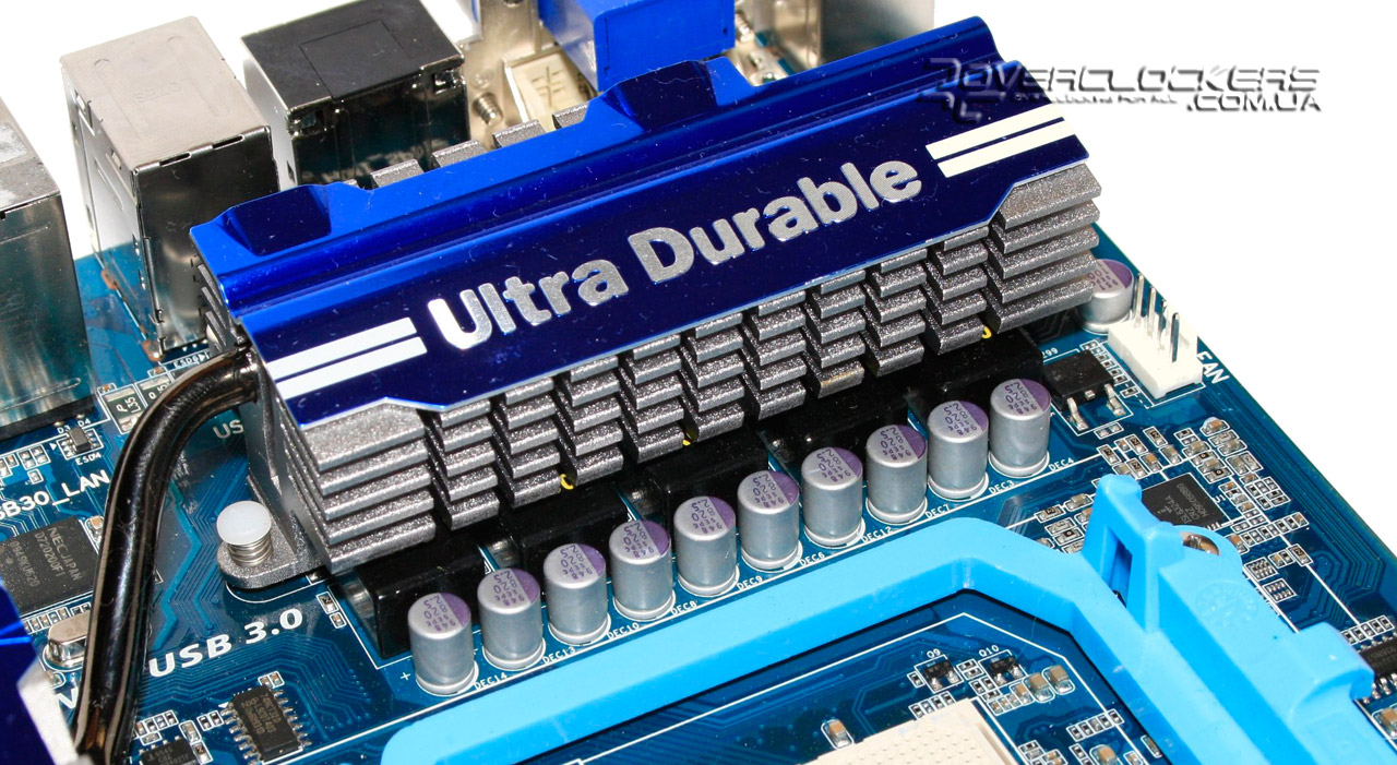 Традиционно для всех современных решений Gigabyte, плата выполнена с применением технологии Ultra Durable 3, которая подразумевает наличие качественной компонентной базы: полимерные конденсаторы, транзисторы с малым сопротивлением в открытом состоянии и утолщенные медные проводники.