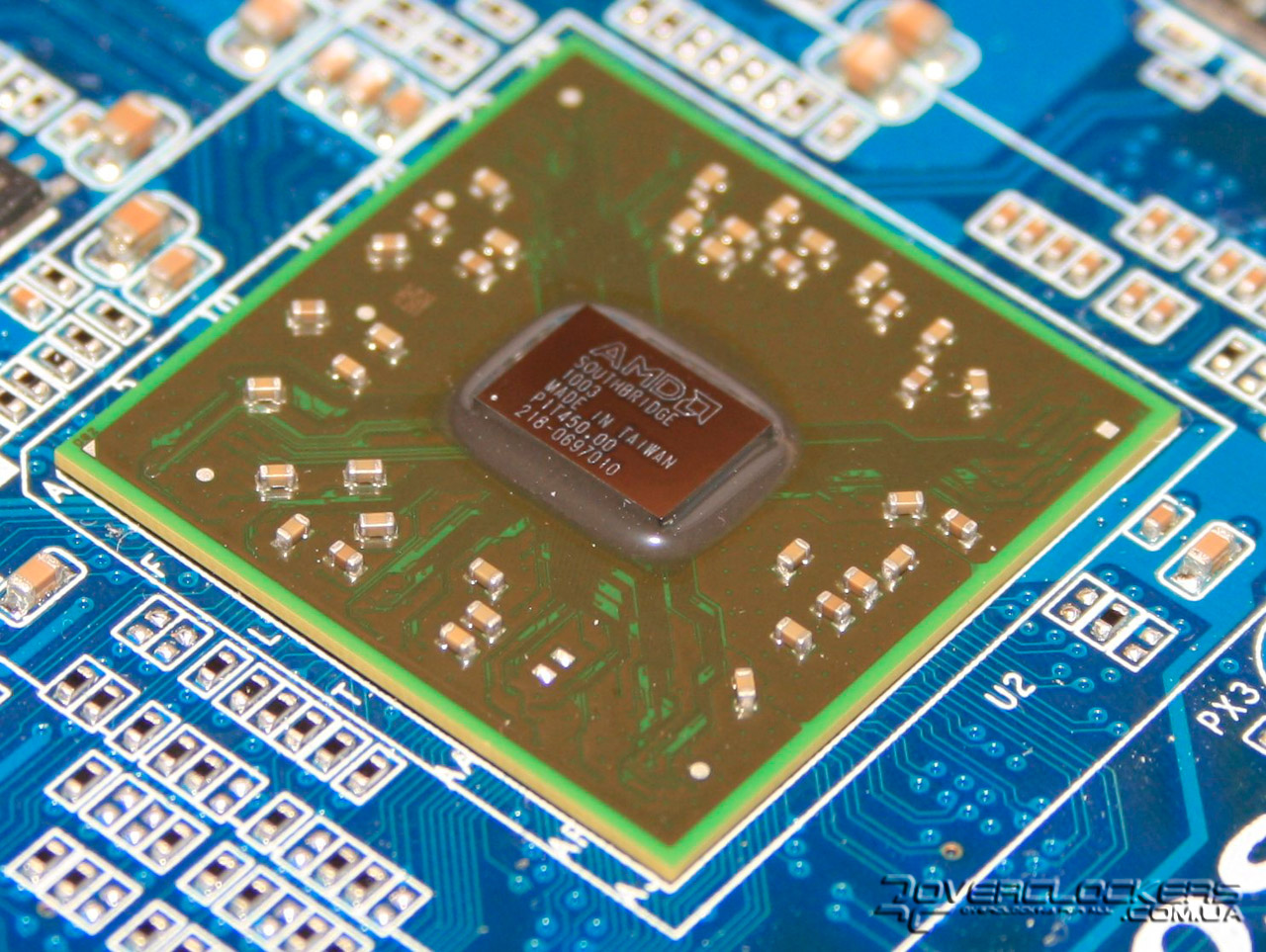 Сегодня мы рассмотрим набор системной логики AMD 890GX, состоящий из одноименного северного моста AMD 890GX и южного SB850. Оба чипа, традиционно для компании, выполнены по 55-нанометровому технологическому процессу. Северный мост сообщается с центральным процессором посредством шины HyperTransport версии 3.0, обеспечивающей пиковую пропускную способность на уровне 41,6 ГБайт/c. Также данный чип содержит в себе контроллер шины PCI Express и графическое ядро. Есть поддержка большинства актуальных графических интерфейсов, таких как DVI, HDMI, DisplayPort и аналогового VGA. Причем HDMI «повзрослел» до версии 1.3. Возможна установка двух дискретных видеокарт. В таком случае, для обоих графических портов PCI Express 2.0 используется режим работы по формуле «8+8». Также обеспечивается поддержка до 6 линий PCI-E 2.0 (дополнительно еще 2 линии — посредством южного моста). Последние решения Intel в этом плане менее функциональны, предоставляя пользователю лишь половину скоростных возможностей шины PCI Express второй генерации.