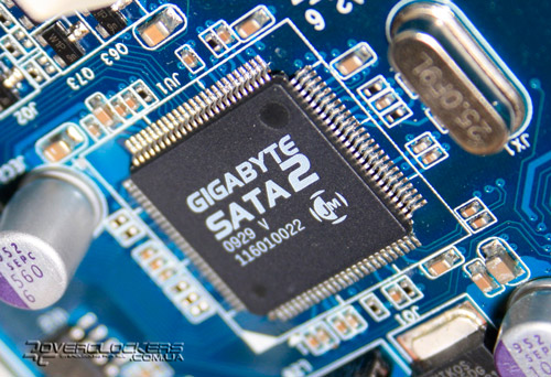 Поддержка SATA 3 Гбит/с осуществляется контроллером, маркированным фирмой Gigabyte, однако произведенным компанией JMicron, о чем свидетельствуют соответствующие надписи на чипе.