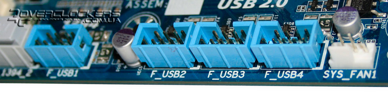 Четыре разъема для восьми USB-устройств имеют оптимальное расположение — в правом нижнем углу платы.