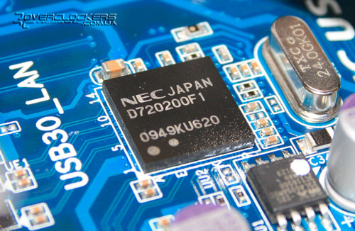 Поддержка USB 3.0 осуществляется посредством чипа NEC D720200F1. К сожалению устройства с таким интерфейсом пока слабо распространены, поэтому проверить работоспособность новой технологии нам не представилось возможным.