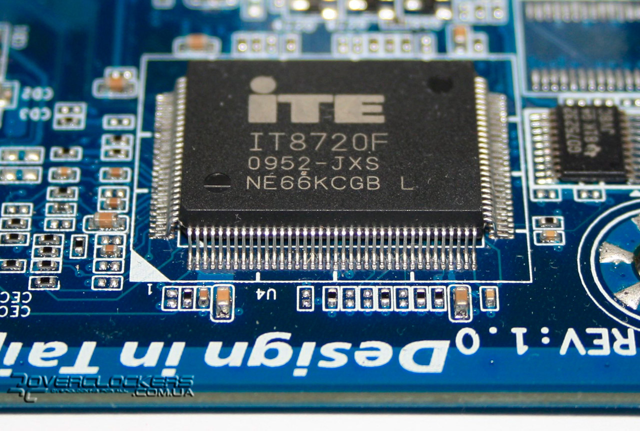Функции аппаратного мониторинга осуществляются при помощи чипа ITE IT8720F.