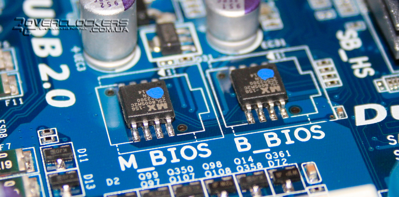 Также на Gigabyte GA-890GPA-UD3H размещены две микросхемы с микрокодом BIOS, обеспечивающие поддержку фирменной технологии Dual BIOS. В случае возникновения сбоя при попытке загрузки из основного чипа (Main BIOS), система автоматически переключается на резервный (Back Up BIOS).