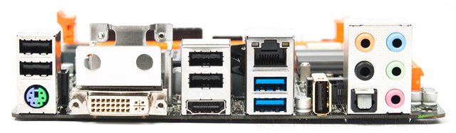 | Дополнительные возможности | Готовность к установке внутреннего адаптера беспроводных сетей (наличие крепежа и удлинителей для подключения внешних антенн, пара отверстий для них на задней панели), особый выход USB DAC-UP Power для подключения внешних звуковых карт, подсветка контура платы оранжевого цвета |