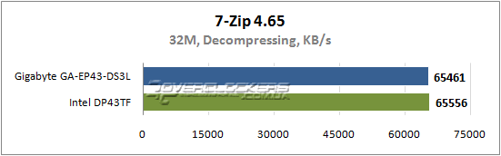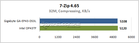 Результаты в бенчмарке архиватора 7-Zip также чуть выше на плате DP43TF, но опять же, разница минимальна.