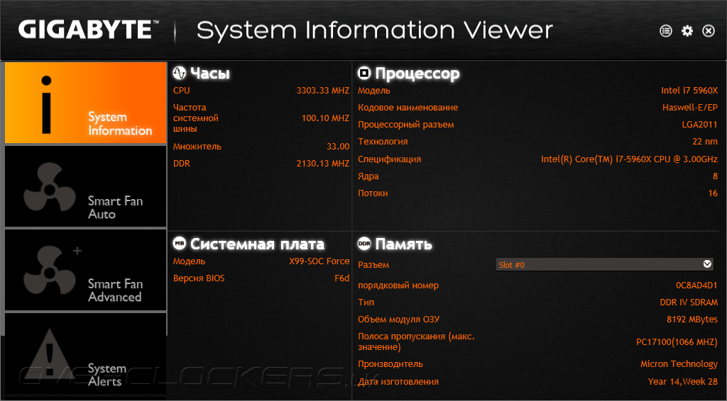 - Gigabyte GA-X99-SOC Force (UEFI Setup f6d от 18.09.2014);