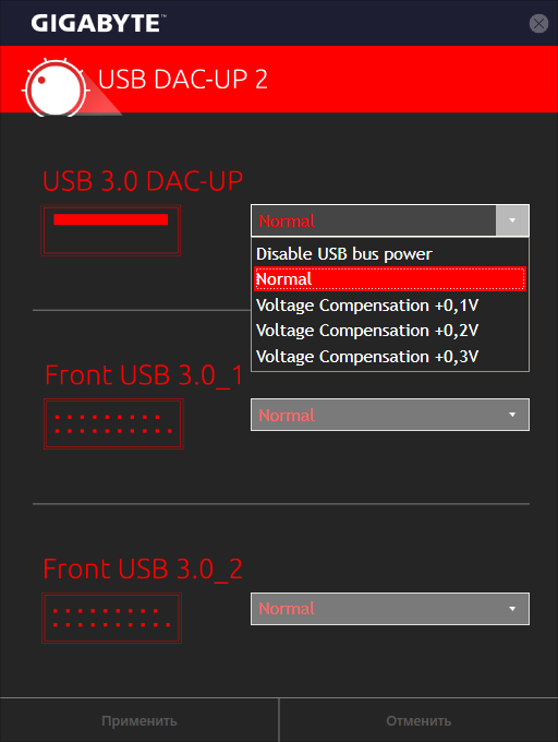 USB DAC-UP 2 позволит увеличить напряжение, как оказалось, не только у пары выходов USB третьего поколения на задней панели, есть ещё возможность увеличения и для двух корпусных пар передовой, третьей версии.