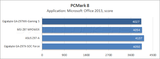 - Futuremark PCMark 8 (в комплексе с Microsoft Office 2013 SP1 Standard);
