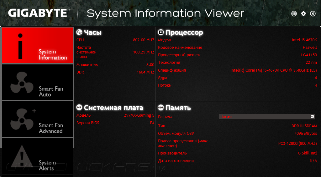 | Память | 4 DIMM DDR3 SDRAM 1333/1600/1800*/1866*/2000*/2133*/2200*/2400*/2500*/ 2600*/2666*/2800*/2933*/3000*/3100*(OC), максимум 32 ГБ |