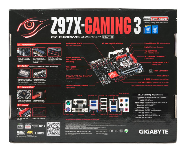 Без труда можно вычислить прямого донора дизайна PCB для GA-Z97X-Gaming 3. Ним выступила популярная у оверклокеров модель GA-Z97X-UD3H, чья стоимость немного больше. Секрет в том, что здесь используется традиционная плата из лакированного текстолита тёмных, коричневых оттенков и обыкновенные твердотельные конденсаторы. Ещё можно отметить упрощённый профиль у радиаторов силовых цепей.
