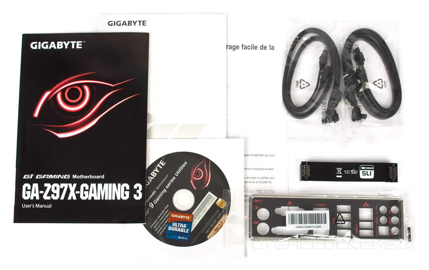 На комплектации не экономили, включив туда ровно столько же компонентов, как это было в случае со старшей GA-Z97X-Gaming 7. Туда вошли: