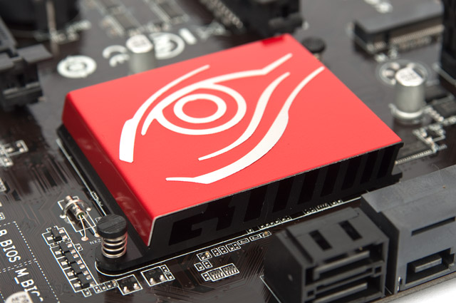 Радиаторы весьма похожи на виденный в составе простой платы GA-Z97M-D3H. Основание у них прочное и весьма массивное, а оребрение реализовано тоже неплохо. Таким образом, контакт с силовыми элементами получился полноценным. Удивительным является обнаруженный на одной из термопрокладок некий элемент, похожий на остатки металлической стружки или даже ножку, быть может, от конденсатора. Надеюсь, это редкий неприятный случай, а не общая практика, присущая всем недорогим моделям.