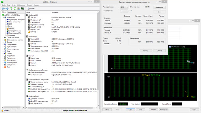 Помимо ЦП, частота кольцевой шины уже привычно повышалась до 4 ГГц, а вот в режим работы ОЗУ вновь ничего особенного не было привнесено. Но это всё вторично, поскольку оставлять систему функционировать в таких условиях попросту опасно. Можно было бы оправдать такое поведение программной среды оверклокерским предначертанием модели GA-Z97X-SOC Force, но отчего тогда не повышалось напряжение CPU VRIN? Надеюсь, что часть вопросов будет устранена при последующем тестировании продукции Gigabyte.