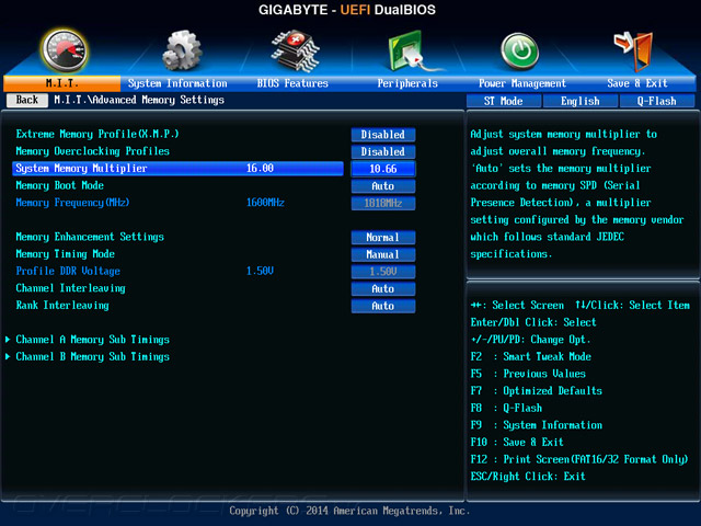 Разгон оперативной памяти прошёл без заминок, что не является само собой разумеющимся явлением, ведь даже G1.Sniper 5 затребовала некоторых усилий в этом вопросе. Так, при напряжении 1,75 В и конфигурации задержек 11-13-12-30-1T наш комплект заработал на частоте 2666 МГц. Второстепенные задержки при этом оказались свойственны прежде виденным значениям, полученным при тестировании прочих системных плат от Gigabyte.