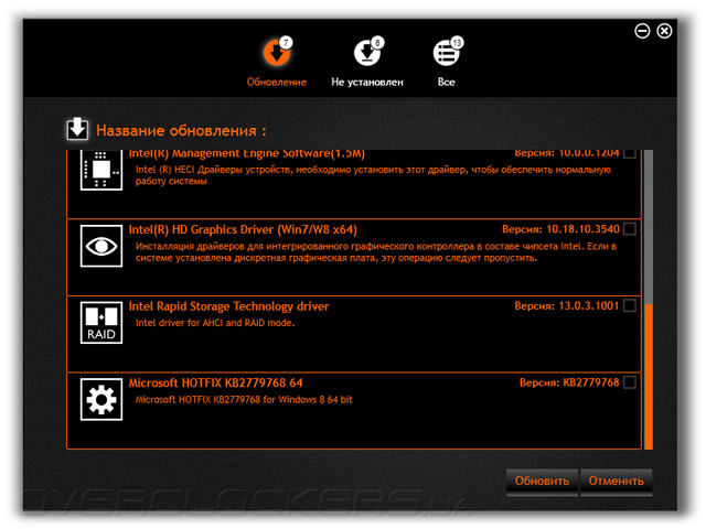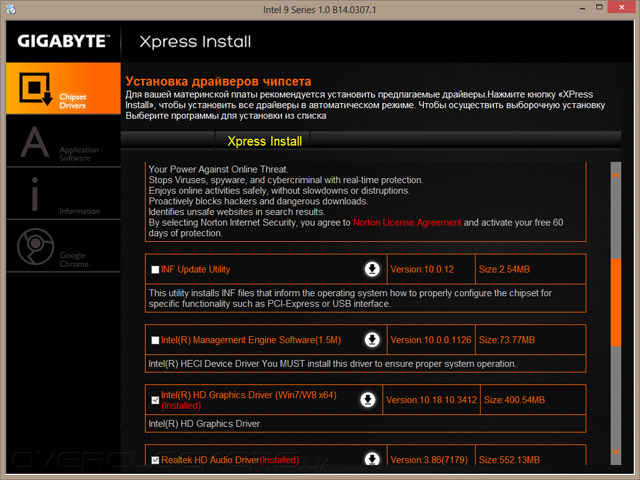 - драйверы: Intel Chipset Software Installation Utility (10.0.14), Intel Management Engine Interface (10.0.0.1204), ForceWare 320.18 (9.18.13.2018), PhysX 9.12.1031.