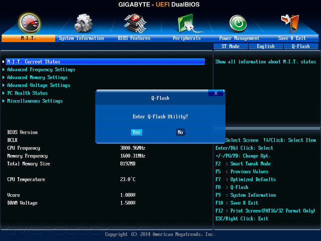 Перед тем как начать внимательно изучать нововведения, версия микрокода была обновлена до самой актуальной (F5). Помог в этом неизменный инструмент производителя под именем Q-Flash.