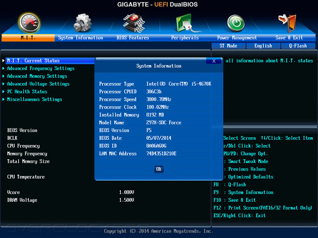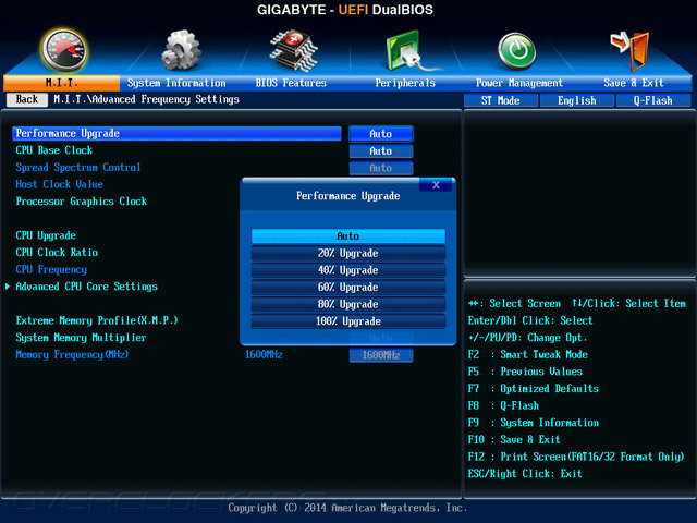 Вновь можно проследить творческий поиск сотрудниками Gigabyte подходящего, современного облика для фирменного интерфейса UEFI. Тяжело судить, насколько он понравится аудитории, но теперь, на мой взгляд, он выглядит явно лучше, чем его прошлые версии. Что же до механизмов, припасённых для выполнения разгона, то ничего нового обнаружить не удалось; существующий функционал портирован с прежних моделей, основывающихся на небезызвестном наборе системной логики — Z87. Возможностей в целом достаточно и в том числе для экстремального разгона компонентов системы.