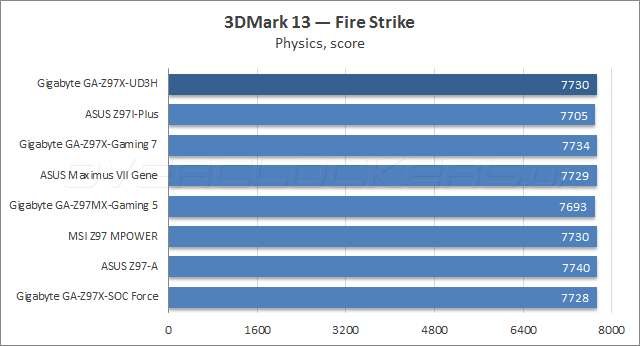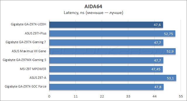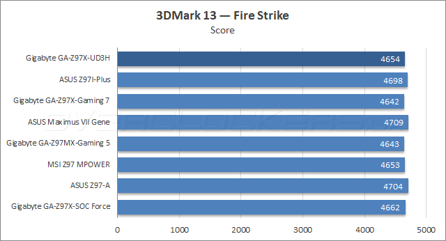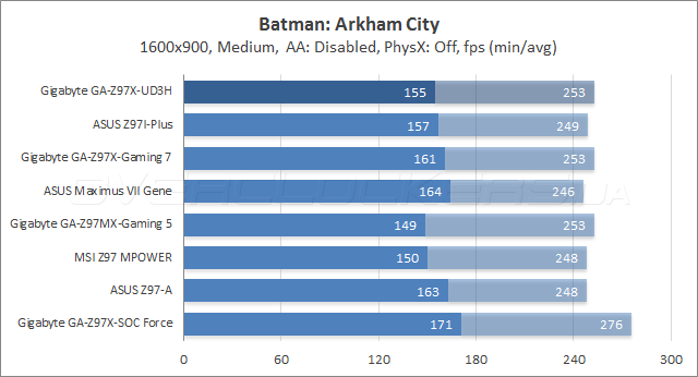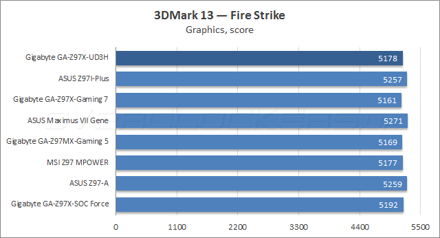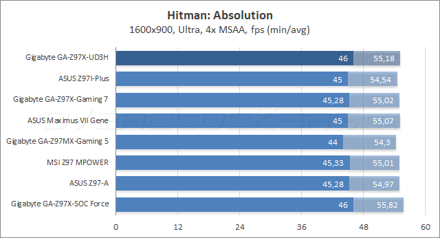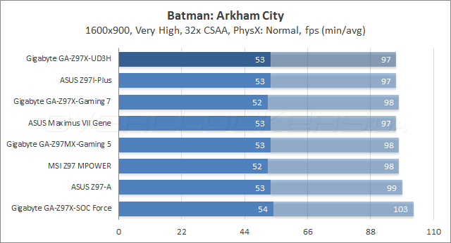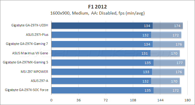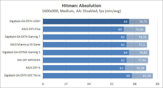 В игровых приложениях GA-Z97X-UD3H выступила более ярко, кое-где прорываясь к лидирующим позициям.